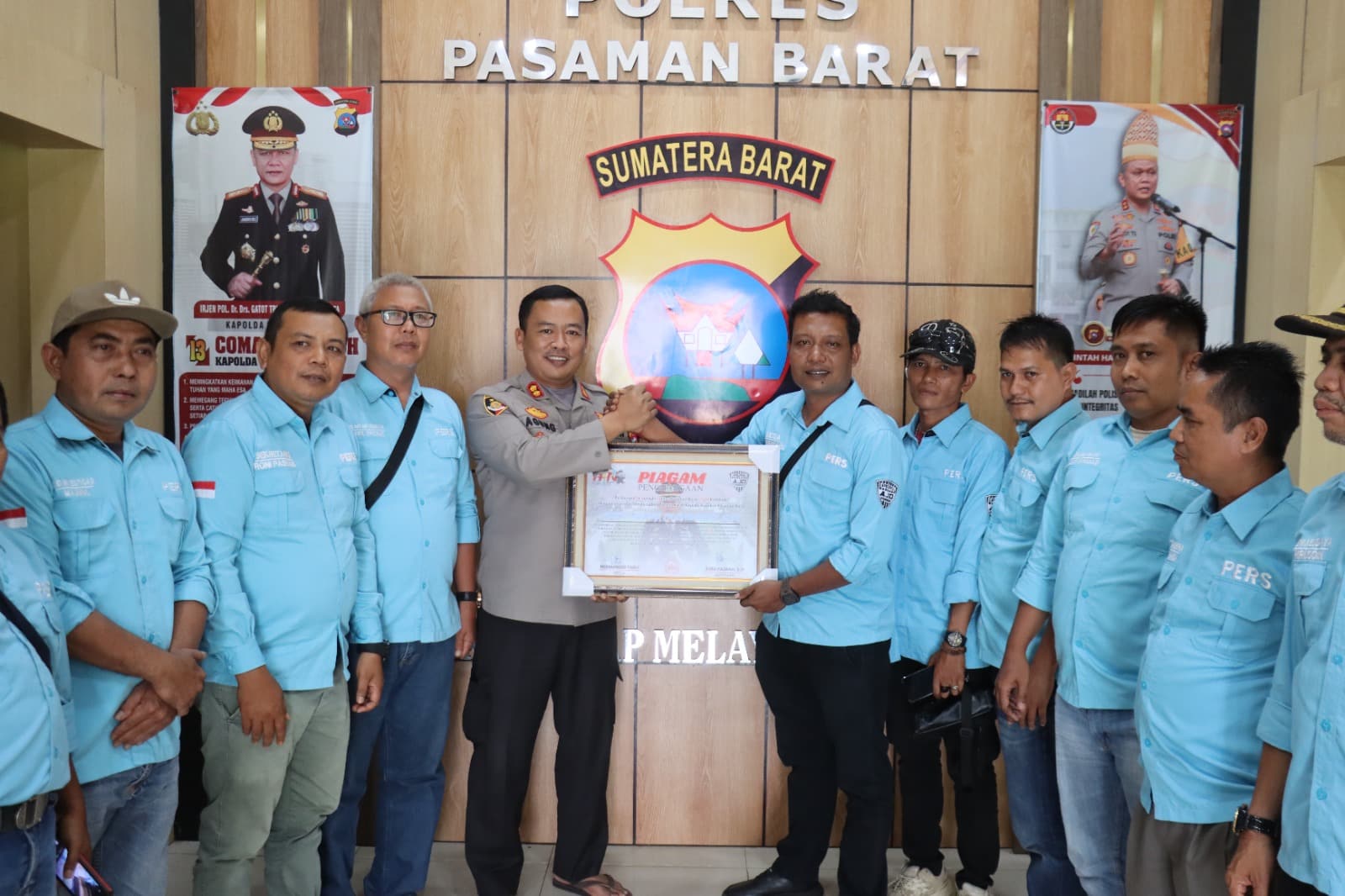 Sebagai bentuk apresiasi, AJO Pasbar menyerahkan piagam penghargaan kepada AKBP Agung Tribawanto, S.I.K., atas dedikasi dan komitmennya dalam mendukung kemerdekaan pers serta membangun kemitraan profesional dengan insan media.