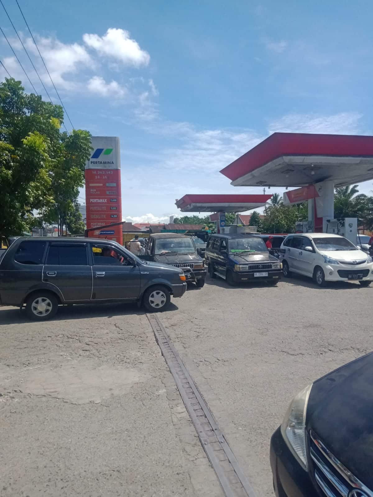 Antrean BBM di SPBU Simpang empat semakin menjadi dan mengular panjang terjadi kelangkaan pada Kamis (25/09/2025).