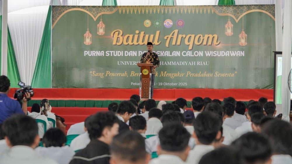 Pekanbaru | Mikanews : Bagian dari upaya untuk memantapkan penguasaan nilai-nilai dan pemahaman kemuhammadiyahan, calon wisudawan Universitas Muhammadiyah Riau (UMRI) mengikuti kegiatan Baitul Arqam, yang dibuka secara resmi oleh Rektor Umri Dr Saidul Amin MA, Kamis (16 Oktober 2025).