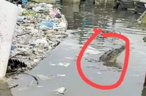 Dalam rekaman berdurasi singkat itu, terlihat seekor buaya muncul ke permukaan air yang keruh dan dipenuhi sampah plastik serta limbah rumah tangga. Diduga Buaya sedang makan sisa makanan berupa tulang ayam yang mengapung di lokasi.