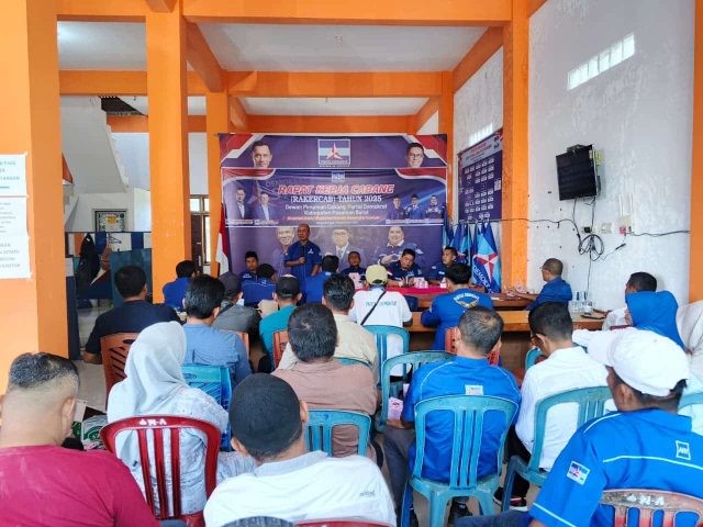 Rapat Kerja Cabang (Rakercab) tersebut berlangsung di Sekretariat DPC Partai Demokrat Simpang Empat, pada hari Kamis, (18/9/2025).