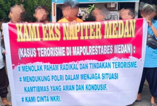 Medan | Mikanews : Eks Napiter Kelompok Kasus Mapolrestabes Medan, menyatakan menolak Paham radikal dan Tindakan Terorisme serta mengajak semua Pihak untuk mencegah penyebaran paham Intoleransi, Radikal dan tindakan terorisme.