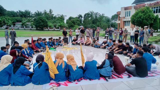 Pasbar | MikaNews.id : Puluhan Mahasiswa yang tergabung dari kelompok Cipayung Kabupaten Pasaman Barat (Pasbar) gelar aksi damai di Gedung DPRD Kabupaten Pasbar, terkait kinerja DPRD dan isu yang berkembang saat ini dengan terjadinya demonstrasi yang hampir terjadi diseluruh Indonesia, Senin (1/9/2025).