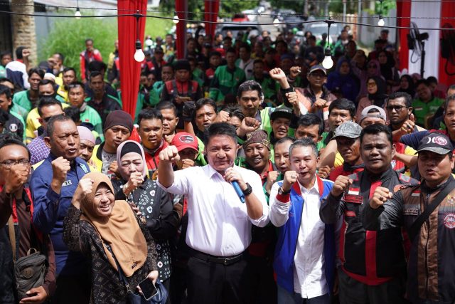 Dalam sambutannya, Herman Deru menyebut para pengemudi ojek online sebagai pahlawan karena telah berkontribusi mengurangi angka pengangguran.