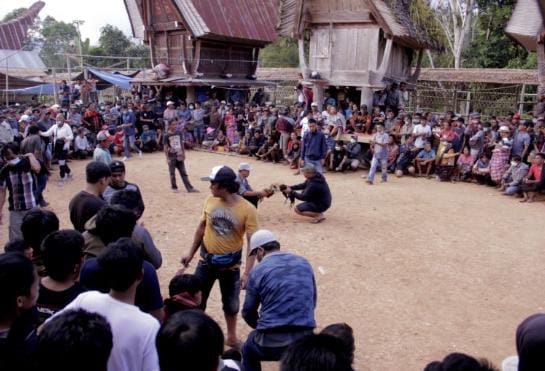 Sabung ayam, tradisi yang memang sudah ada sejak lama di Indonesia, tapi kini dilarang secara hukum.