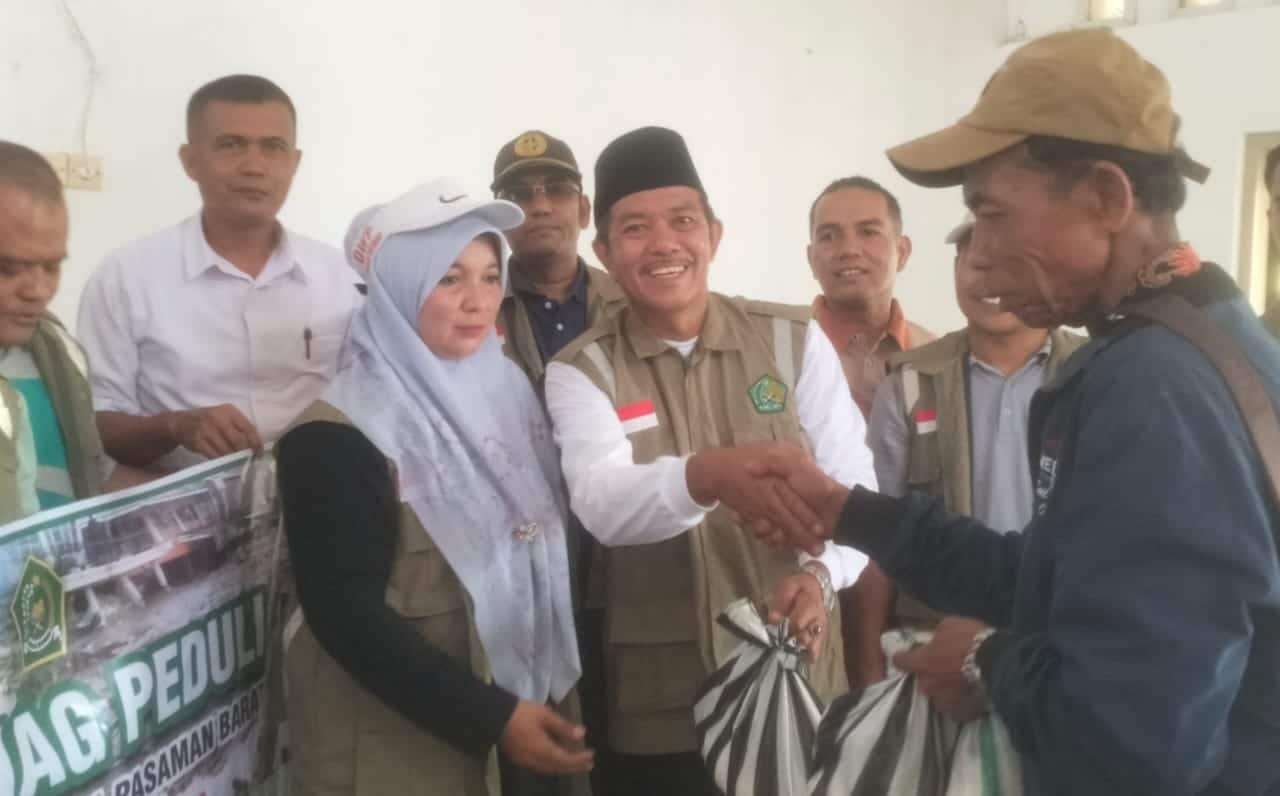 Sebagai instansi pemerintah yang melaksanakan pembangunan daerah di bidang keagamaan. Bersama aparaturnya menyalurkan bantuan untuk warga terdampak bencana di dua lokasi dalam wilayah Kecamatan Talamau.