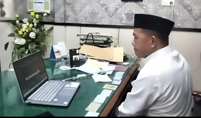 Pasaman Barat | Mikanews.id : Kepala Kantor Kementerian Agama Kabupaten Pasaman Barat, Rali Tasman, Selasa (12/8) mengikuti zoom metting bersama Menteri Agama RI, Prof. Nasaruddin Umar, dan bersama Biro Keuangan Kementerian Agama di ruang kerjanya, Simpang Empat.