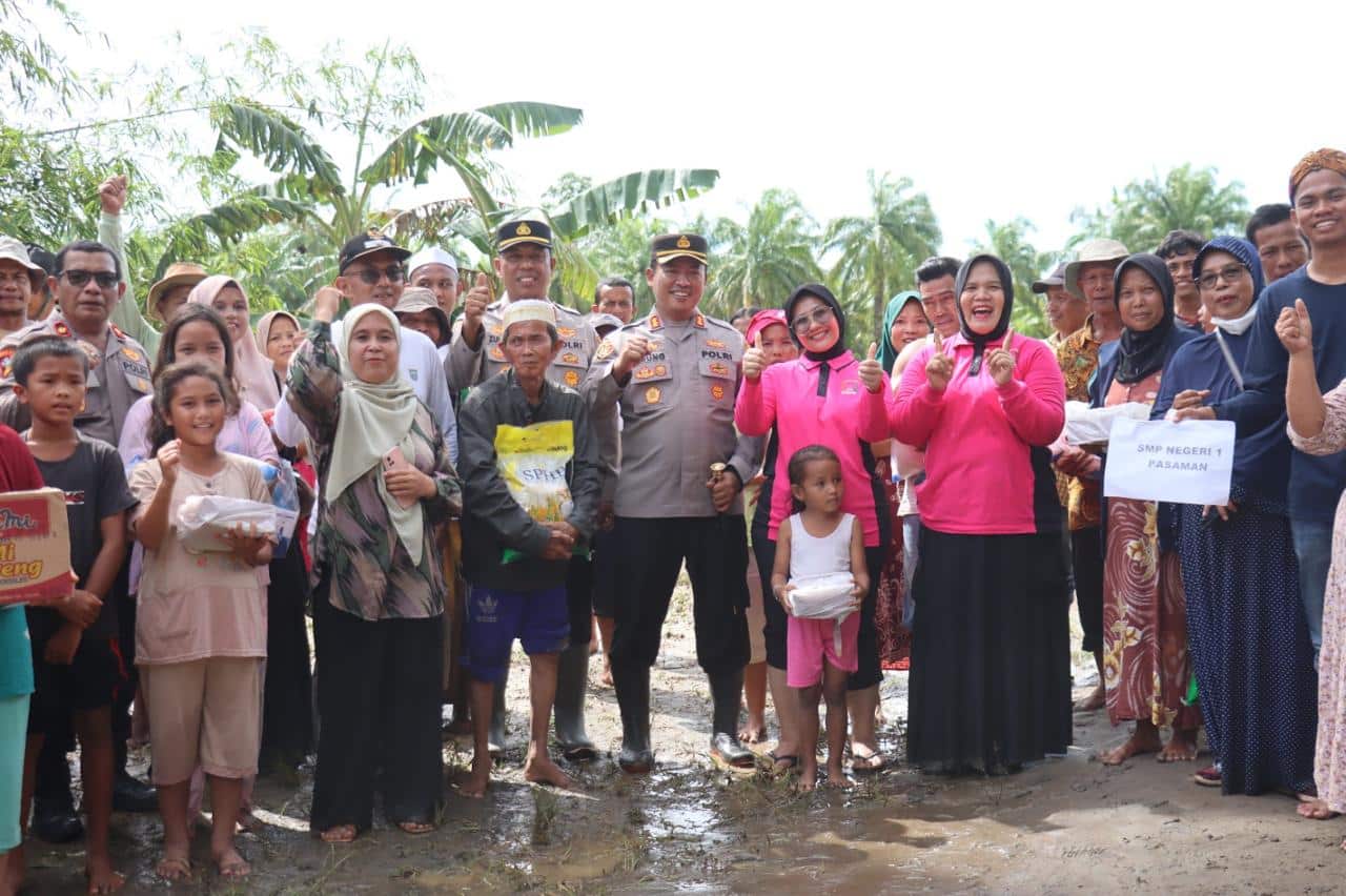 Pasaman Barat | Mikanews : Kepolisian Resor (Polres) Pasaman Barat, Sumatera Barat (Sumbar), melaksanakan pendistribusian bantuan lanjutan untuk korban banjir di Kampung Nelayan Jorong Pondok, Nagari Ranah Pasisie, Kecamatan Sasak Ranah Pasisie, Minggu (30/11/2025).