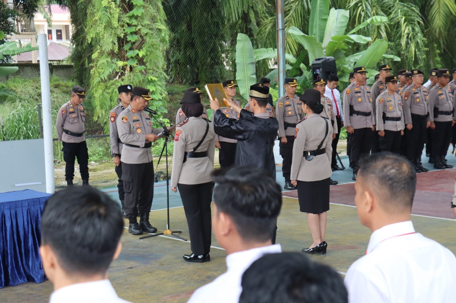 Rangkaian acara yang diawali dengan laporan kegiatan sertijab dari pejabat lama ke pejabat baru dan dilanjutkan dengan pengambilan sumpah jabatan oleh Kasat Lantas yang baru, yang didampingi oleh rohaniawan.