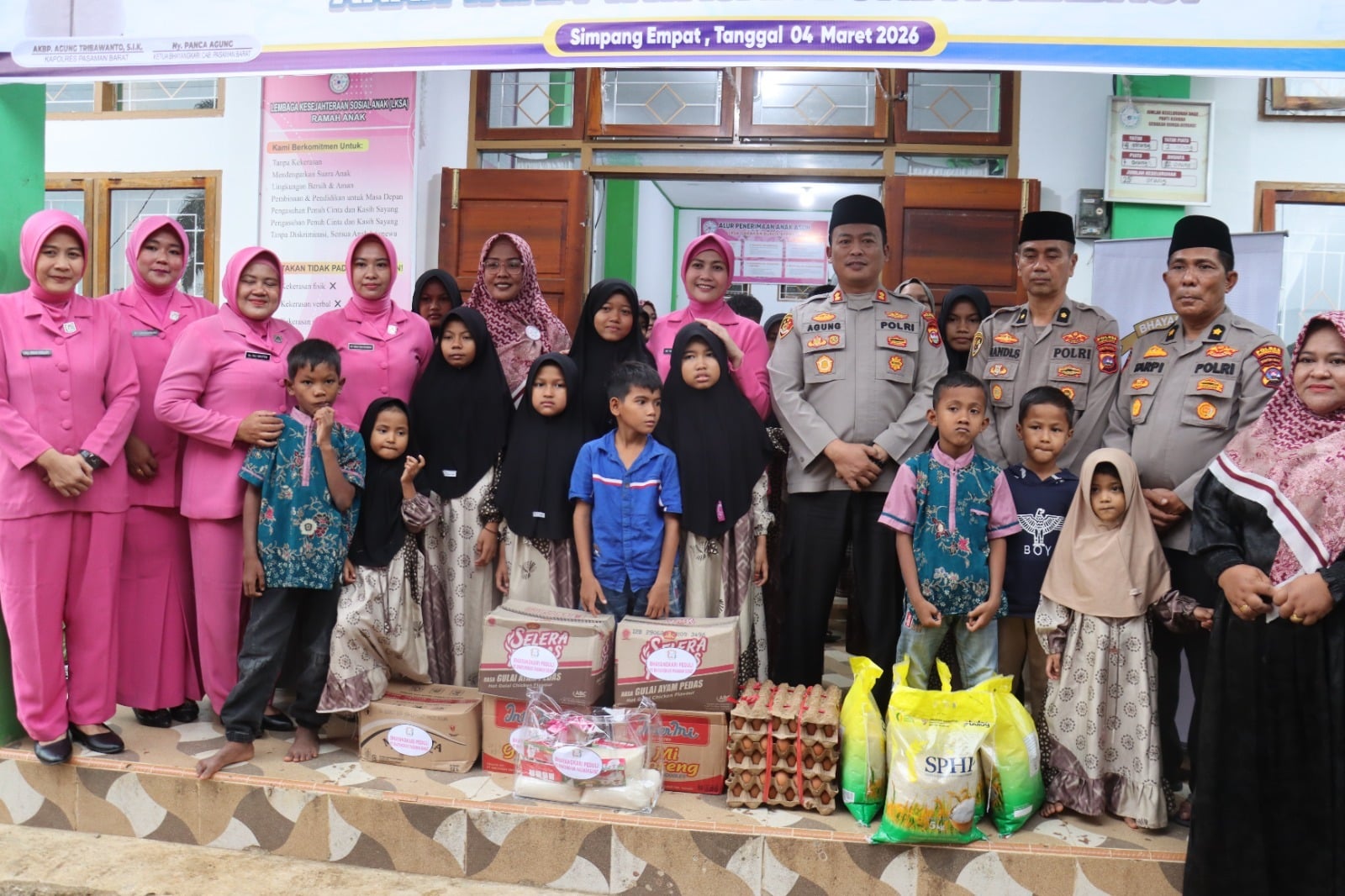 PASAMAN BARAT | Mikanews.id – KAPOLRES PASAMAN BARAT AKBP Agung Tribawanto, S.Ik menunjukkan kepedulian sosial dengan menyerahkan bantuan kepada anak-anak yatim di Panti Asuhan Yayasan Bunda Berbagi. Kegiatan kemanusiaan tersebut berlangsung di Jorong Simpang, Nagari Lingkuang Aua, Kecamatan Pasaman, Kabupaten Pasaman Barat, Rabu (4/3/2026).