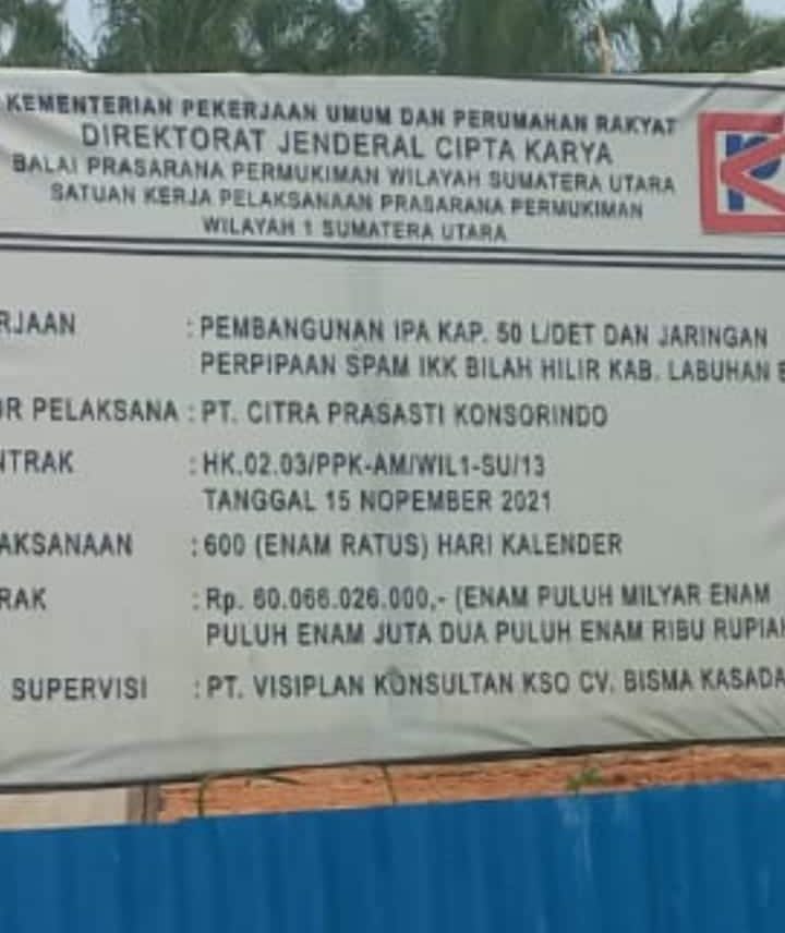 Lebih jauh, pada pembangunan IPA Kapasitas 50 L/DET di Bilah Hilir, Labuhanbatu, dengan anggaran Rp 60 miliar dari APBN 2021, IKI menyoroti dugaan pengerjaan yang asal jadi dan tidak sesuai spesifikasi. Bahkan, pondasi dinding penahan bangunan diduga mengalami kerusakan.
