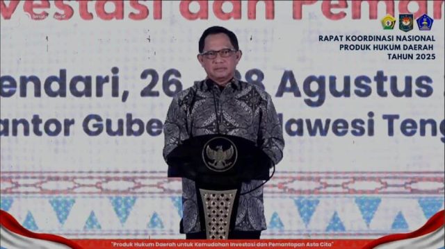Kendari | Mikanews : Menteri Dalam Negeri (Mendagri) Tito Karnavian memaparkan beberapa strategi untuk meningkatkan Pendapatan Asli Daerah (PAD) dihadapan kepala daerah se Indonesia dalam kegiatan Rapat Koordinasi Nasional Produk Hukum Daerah 2025, yang diselenggarakan di Kendari, Rabu (27/8/25).
