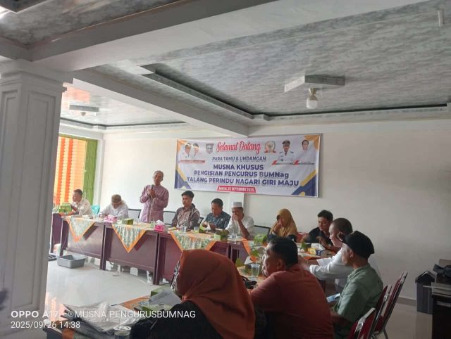 Musna khusus yang diselenggarakan di Aula Kantor Badan Permusyawaratan (Bamus) Nagari Giri Maju pada Jumat, (26/09/2025), bertujuan untuk memilih dan menetapkan calon Pengurus Bumnag dari hasil seleksi yang telah dilaksanakan oleh Pansel pada bulan Agustus yang lalu.