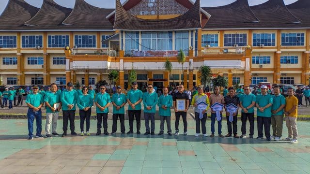 Penyerahan secara simbolis ditandai dengan penyerahan kunci rumah kepada penerima manfaat diantaranya Ahmad Rafkidari Binjai Jorong Koto Dalam kecamatan Sungai Aur, Julsopia Rudi dari Jorong Sakato Jaya kecamatan Sungai Aur, dan Rahmat yang diwakili oleh Wali Nagari Sungai Aur Kecamatan Sungai Aur saat apel peringatan hari lingkungan hidup di halaman kantor Bupati setempat Rabu (4/5).