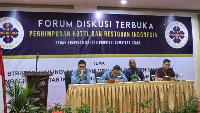 Sumatra Utara | Mikanews : Perhimpunan Hotel Dan Restoran Indonesia (PHRI) Sumut Badan Pimpinan Daerah Sumut menggelar Forum Diskusi Terbuka bertema “Strategi dan Inovasi Dalam Menjaga Dan Meningkatkan Kembali Stabilitas Iklim Usaha Perhotelan Di Sumatera Utara” Jumat (20/6) di Grand Kanaya Hotel.