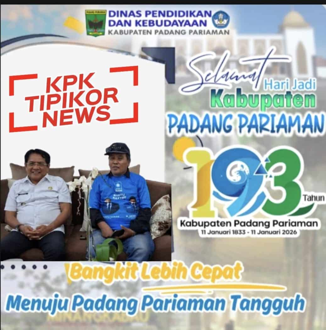Padang Pariaman | Mikanews : Pimpinan Umum KPK Tipikor News, Tomy Chandra, mengucapkan Selamat Hari Jadi Kabupaten Padang Pariaman ke-193 yang diperingati pada 11 Januari 2026. Peringatan hari jadi ini diharapkan menjadi momentum refleksi bersama untuk memperkuat persatuan, kebersamaan, serta semangat gotong royong dalam membangun daerah.