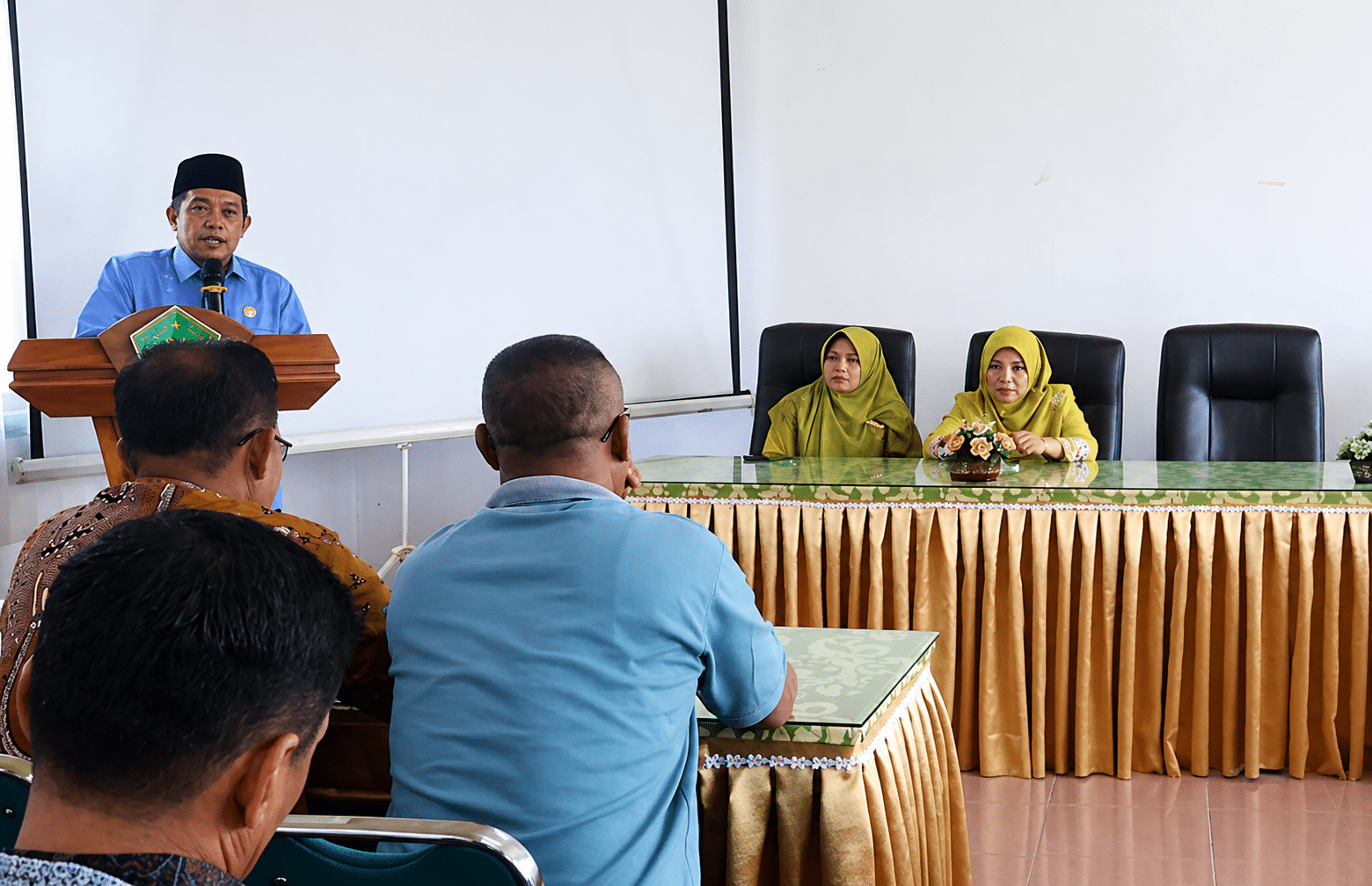 Para pejabat, perwakilan kepala madrasah negeri, kepala KUA bersama perwakilan dari Aparatur Sipil Negara (ASN) Kantor Kementerian Agama Pasaman Barat, Rabu (29/4), hantarkan Rali Tasman, mantan Kepala Kantor Kementerian Agama Pasaman Barat ke tempat tugasnya yang baru di Lubuk Sikaping, Kabupaten Pasaman.