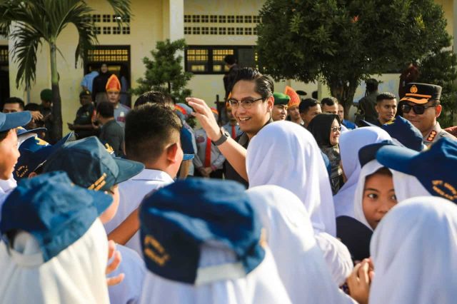 Medan | Mikanews : DI hadapan ratusan anak sekolah SMP Negeri 2 Medan, Jalan Brigjen Katamso, Medan Maimun, Wali Kota Medan Rico Tri Putra Bayu Waas memperkenalkan program Satpol PP Go to School. Perkenalan program ini ditandai dengan upacara dan penyematan tanda Duta Trantibum kepada siswa-siswi di halaman SMP Negeri 2 Medan, Selasa (3/6/2025).