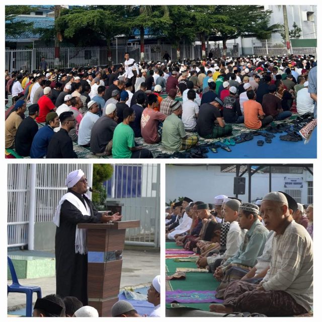 Ustad Habib Rayhan Alhirid sebagai Imam dan khatib dalam khutbahnya menyampaikan tentang pentingnya pengorbanan, kesabaran, dan keikhlasan dalam menghadapi ujian hidup.