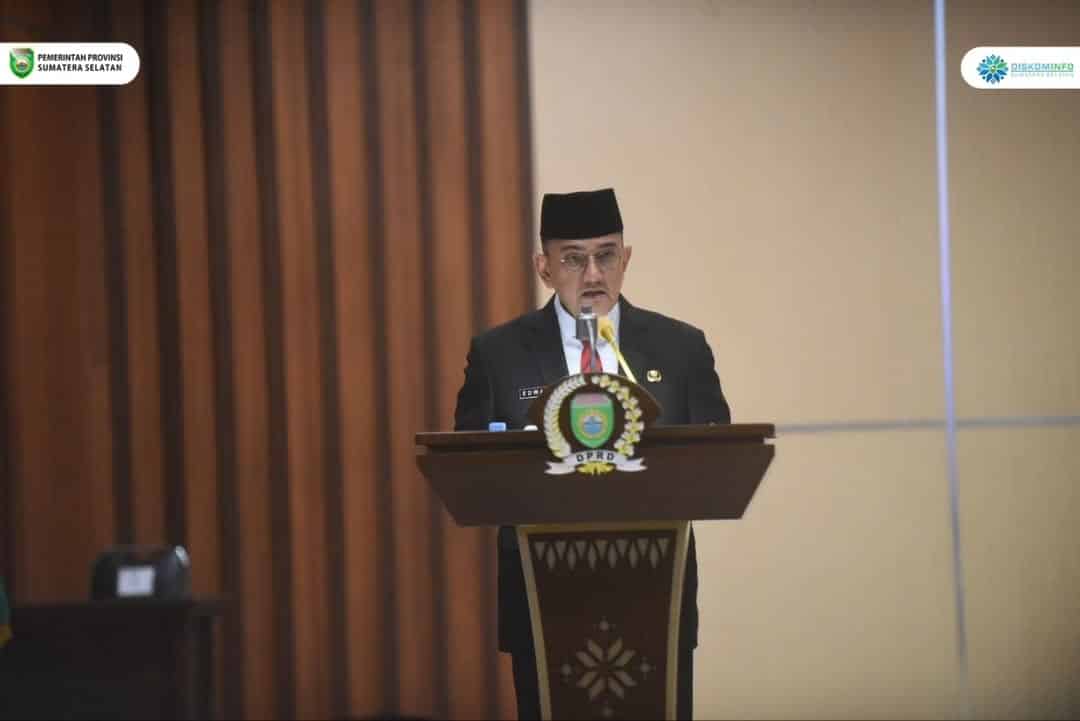 Palembang | Mikanews.id : Gubernur Sumatera Selatan, H. Herman Deru, yang diwakili oleh Sekretaris Daerah (Sekda) Sumsel H. Edward Candra, hari ini menyampaikan jawaban atas pandangan umum fraksi-fraksi DPRD Provinsi Sumsel terhadap perubahan APBD Sumsel tahun anggaran 2025, Jumat (25/07/2025).
