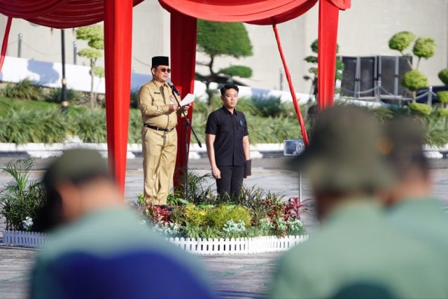 Pekanbaru | Mikanews : Sekretaris Daerah Provinsi (Sekdaprov) Riau, Syahrial Abdi menjadi inspektur pada Apel Kebangsaan Tahun 2025, di Lapangan Kantor Gubernur Riau, Senin (8/9/2025).