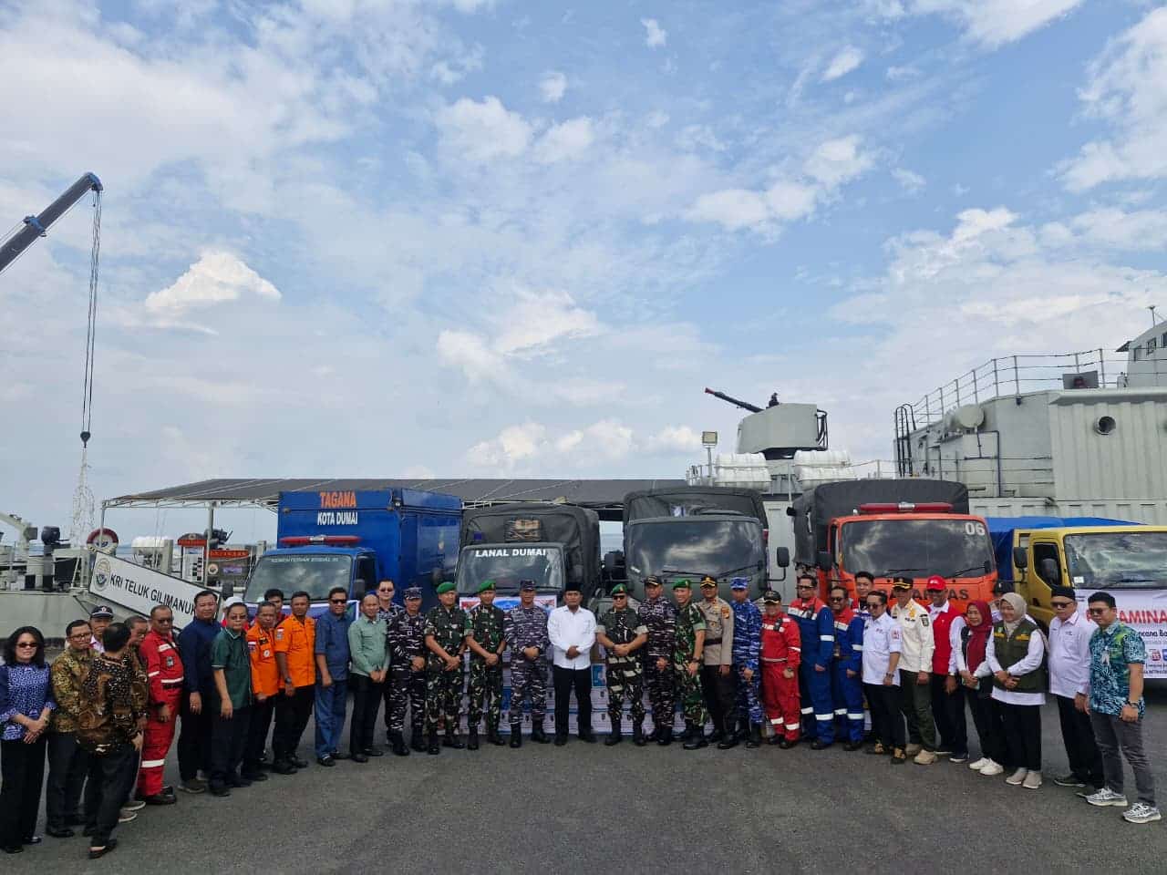 Danlanal Riau Kolonel Laut (P) Abdul Haris, menyampaikan apresiasi kepada seluruh pihak yang berdonasi. Ia juga berpesan kepada Komandan KMP Teluk Gilimanuk agar mengawal bantuan dengan selamat.