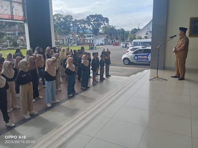 Pasaman | Mikanews : Wakil Bupati Pasaman H. Parulian, didampingi Waka Polres Pasaman Kompol Budi Hendra, secara resmi melepas keberangkatan Polisi Cilik (Pocil) Polres Pasaman di halaman Kantor Bupati, Selasa (16/9).