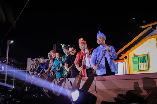 Pekanbaru | Mikanews.id : Wali Kota (Wako) Pekanbaru, Agung Nugroho turut menirukan tarian ‘Aura Farming’ Pacu Jalur saat pentas budaya di Rumah Tuan Kadi, Sabtu (19/7/2025) malam.